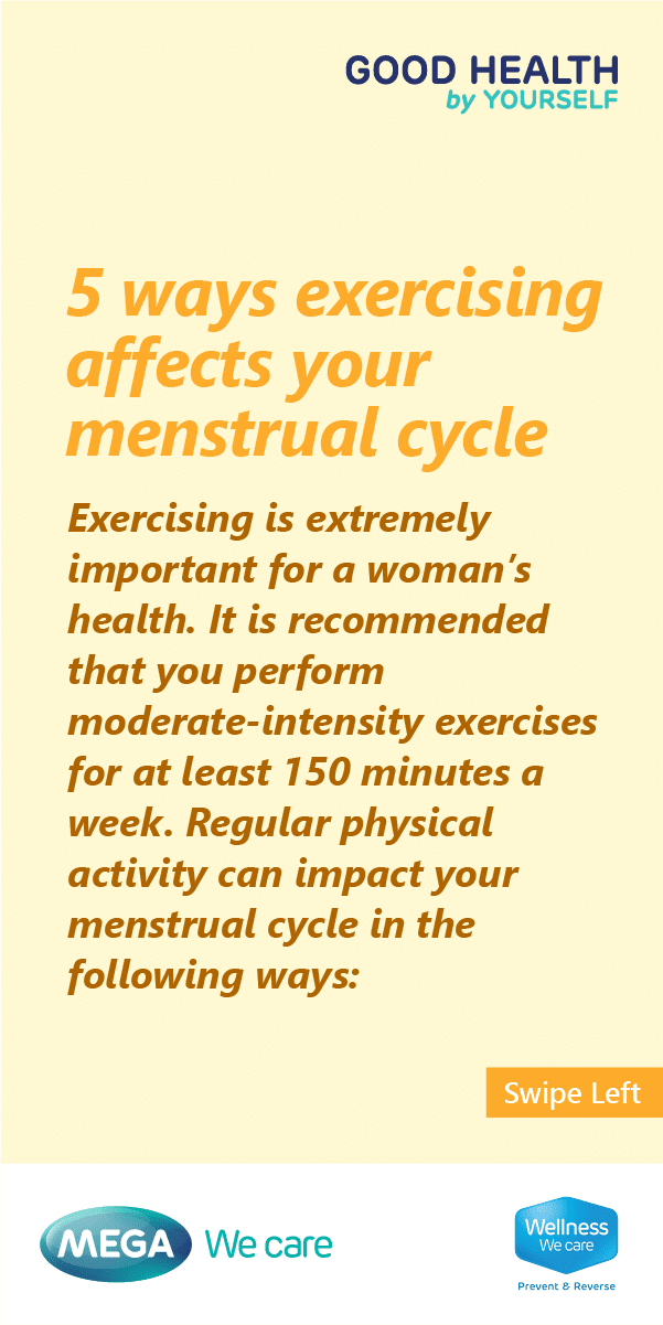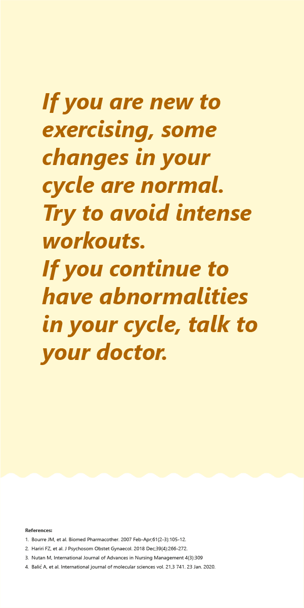 Regular exercise leads to regular menstrual cycles! There is evidence that suggests women who exercise regularly are more likely to have regular periods. Apart from this, exercise helps improve blood circulation and helps you combat problems like light or heavy periods!