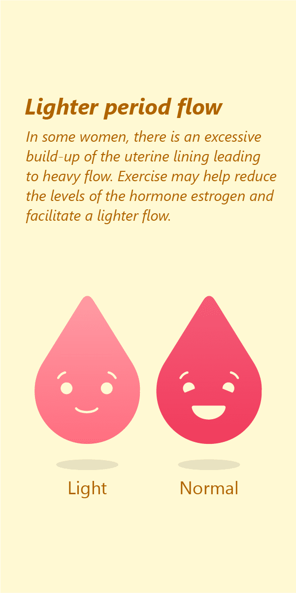 - Exercise helps improve blood circulation and helps you combat problems like light or heavy periods!