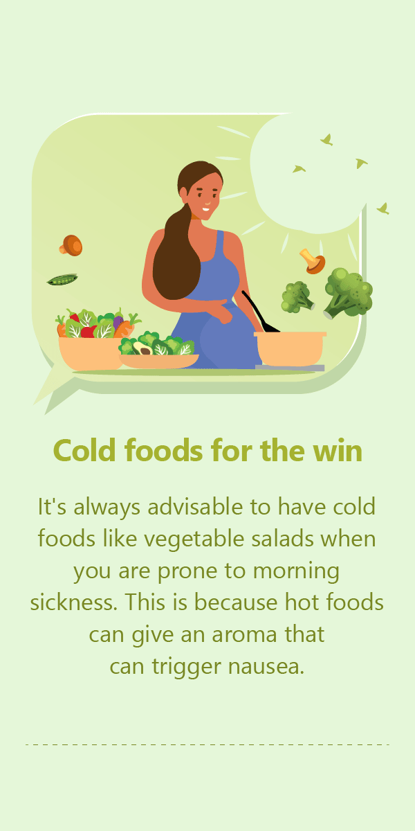 It is just like the phrase says – You are what you eat! If you keep indulging in gooey brownies or pizzas and fries, you’re bound to have severe morning sickness during pregnancy. Try swapping those junk foods with healthier alternatives. Here are a few food items you can include in your diet for a happier and healthier trimester: