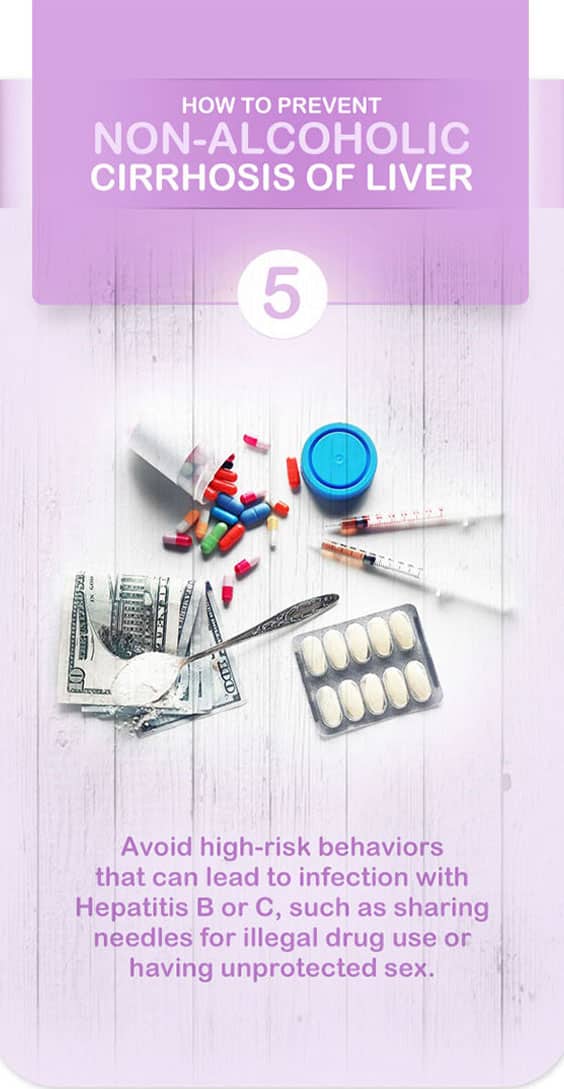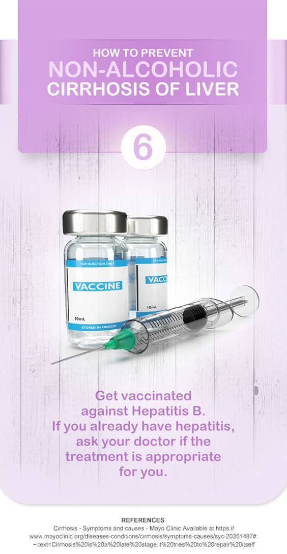 Identify your risks of Non-Alcoholic Fatty Liver Disease and do everything to reverse NAFLD, including losing weight and improving your diet. If you have diabetes, follow your doctor’s advice strictly. Get vaccinated for Hepatitis A and B. These can help you prevent non-alcoholic cirrhosis.