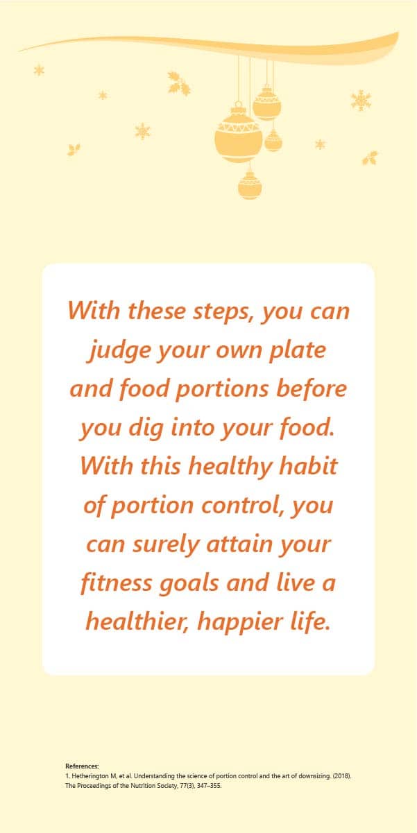 Remember, portion control is among the most easy ways to eat guilt-free and keep your cravings in check. So, if mindful eating is on your mind, make sure you incorporate portion control not just in your holiday eating but also into your list of diet New Year’s resolutions.